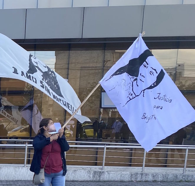 “¡Somos la voz de nuestras hermanas, somos la voz de las que han matado, somos la lucha de las silenciadas!”, gritan activistas de Luna Roja, una organización que trabaja por la defensa de los Derechos Humanos en Ecuador. El rostro de Brigith, plas…
