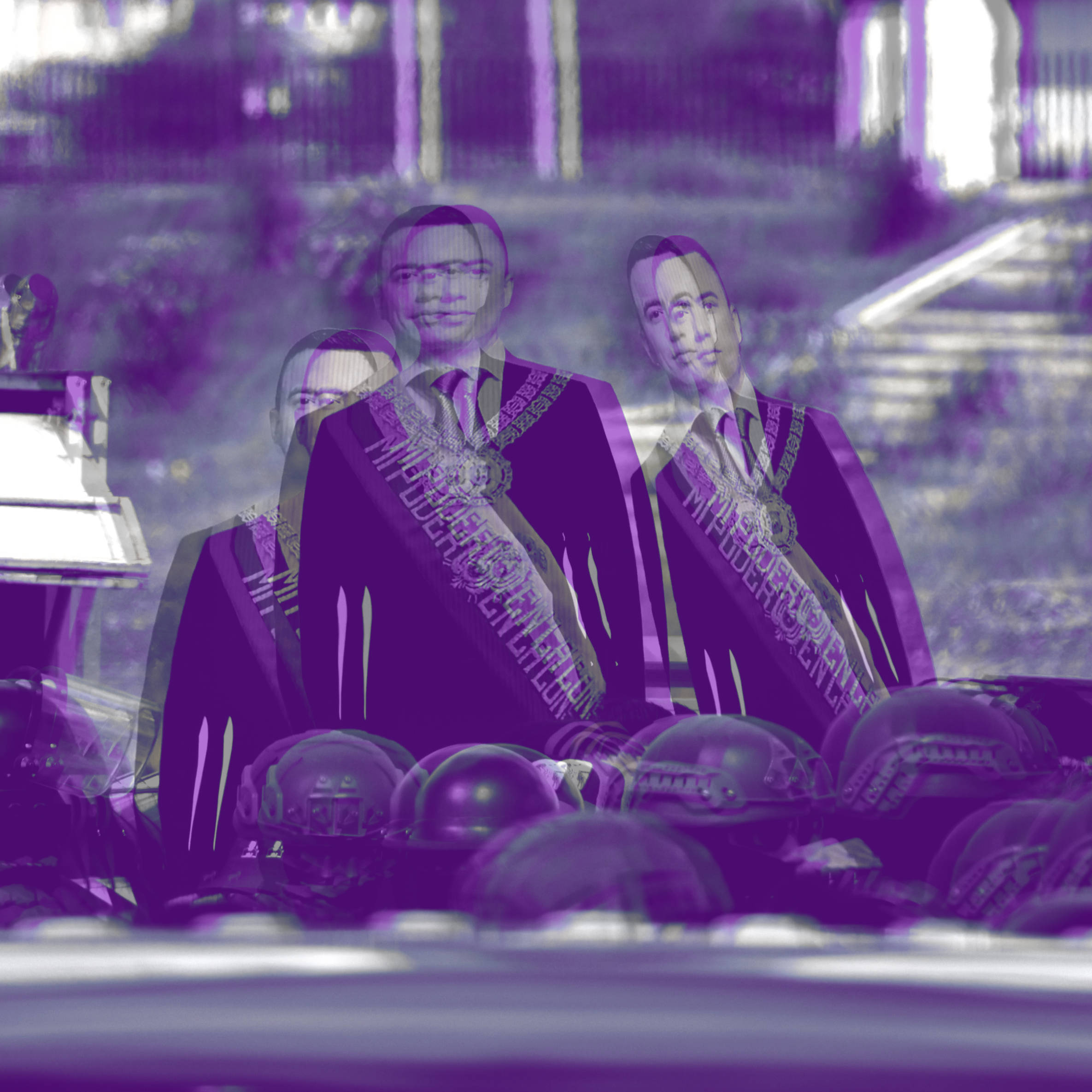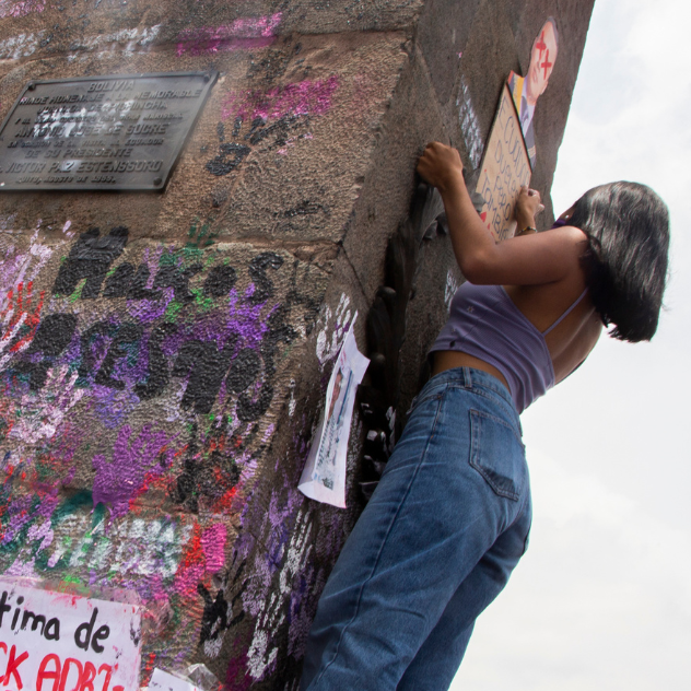 Portada: Se lee “Milicos asesinos” y otros mensajes pintados sobre el pedestal del monumento a Sucre en la plaza de Santo Domingo, Quito. 8 de marzo de 2025. Foto: Vanessa Terán.