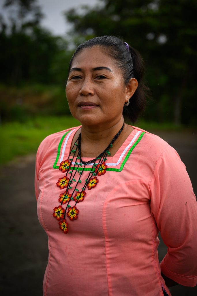 Todo el año 2020 pasaron “atrapados”, como dice ella, sin poder salir a buscar alimentos. Explica que en tres ocasiones recibió un kit de alimentos que tenía cuatro galones de agua por familia y otros alimentos por parte del Gobierno del entonces presidente Lenín Moreno. “Pura harina. Si quiera unas seis bolsas venían. Nosotros no estamos acostumbrados a eso, no comemos eso. Más se usaron para jugar en carnaval. Nosotros pescábamos en el río y ya no pudimos hacerlo. Nos tocó buscar la manera de alimentarnos del monte”.