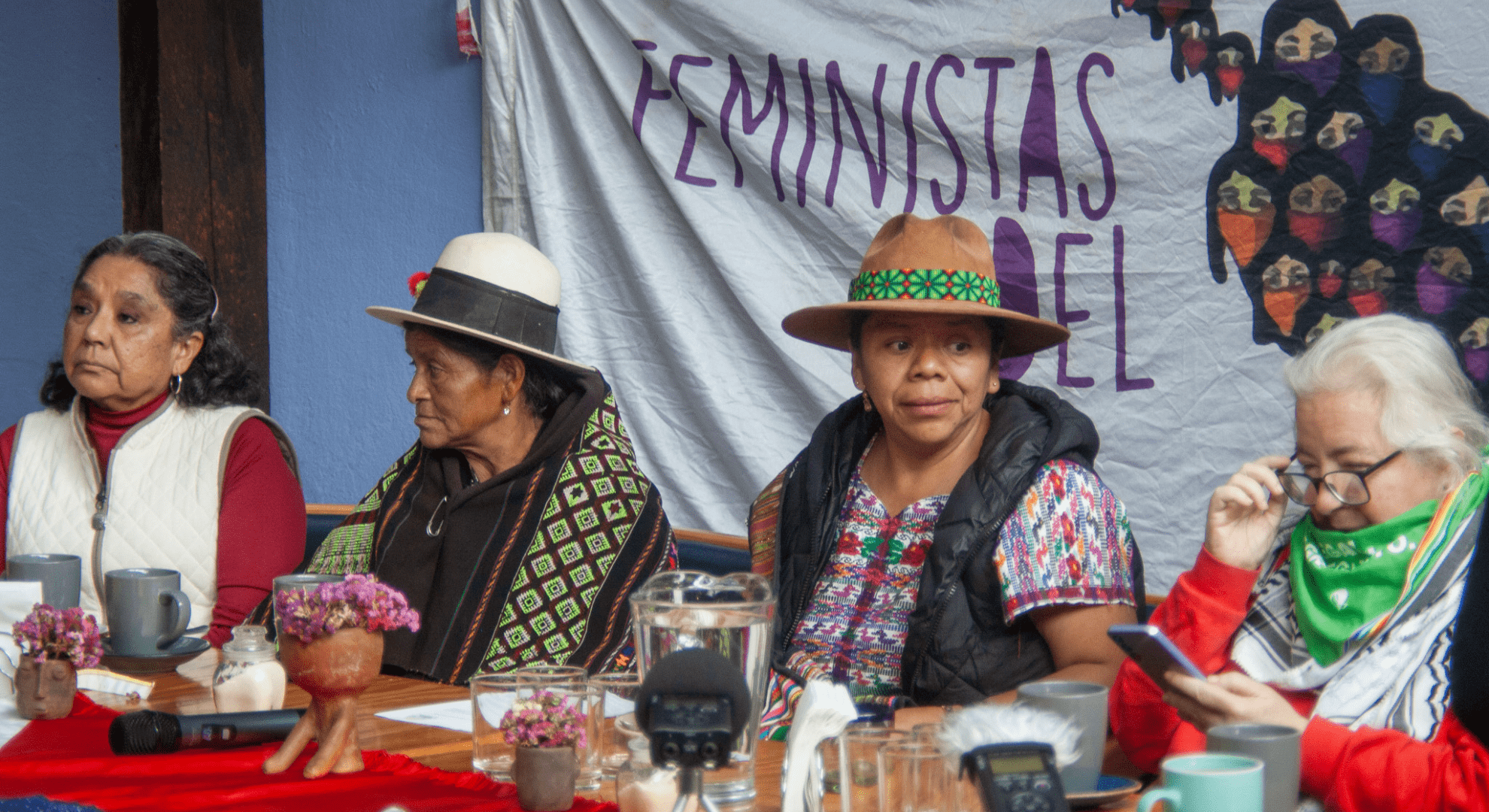 Una mujer de baja estatura y de sonrisa amplia espera a que una última bandera ocupe un espacio detrás de la mesa donde dará la conferencia de prensa, en el restaurante Taniperla. La bandera pide la libertad de los seis presos políticos de Chiapas que se han opuesto a la militarización y a proyectos extractivistas que destruirían sus comunidades, ellos son: José Díaz, indígena ch’ol, base de apoyo del Ejército Zapatista de Liberación Nacional; Manuel Santiz Cruz, Agustín Pérez Domínguez, Juan Velasco Aguilar, Martín Pérez Domínguez y Agustín Pérez...